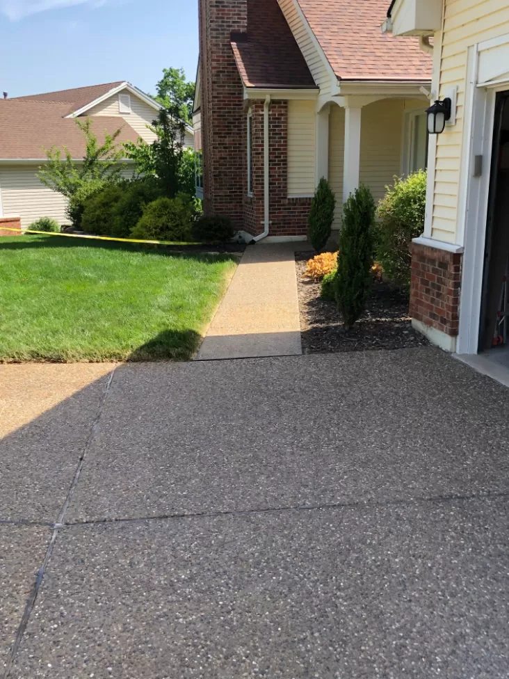 We were called out to this property in Chesterfield, MO to help blend in a stain on the driveway from spilled carpet glue before resealing. After cleaning and blending in the stain as best as possible everything was sealed with a premium sealer with a little tint added to help blend without changing the color of the driveway drastically.