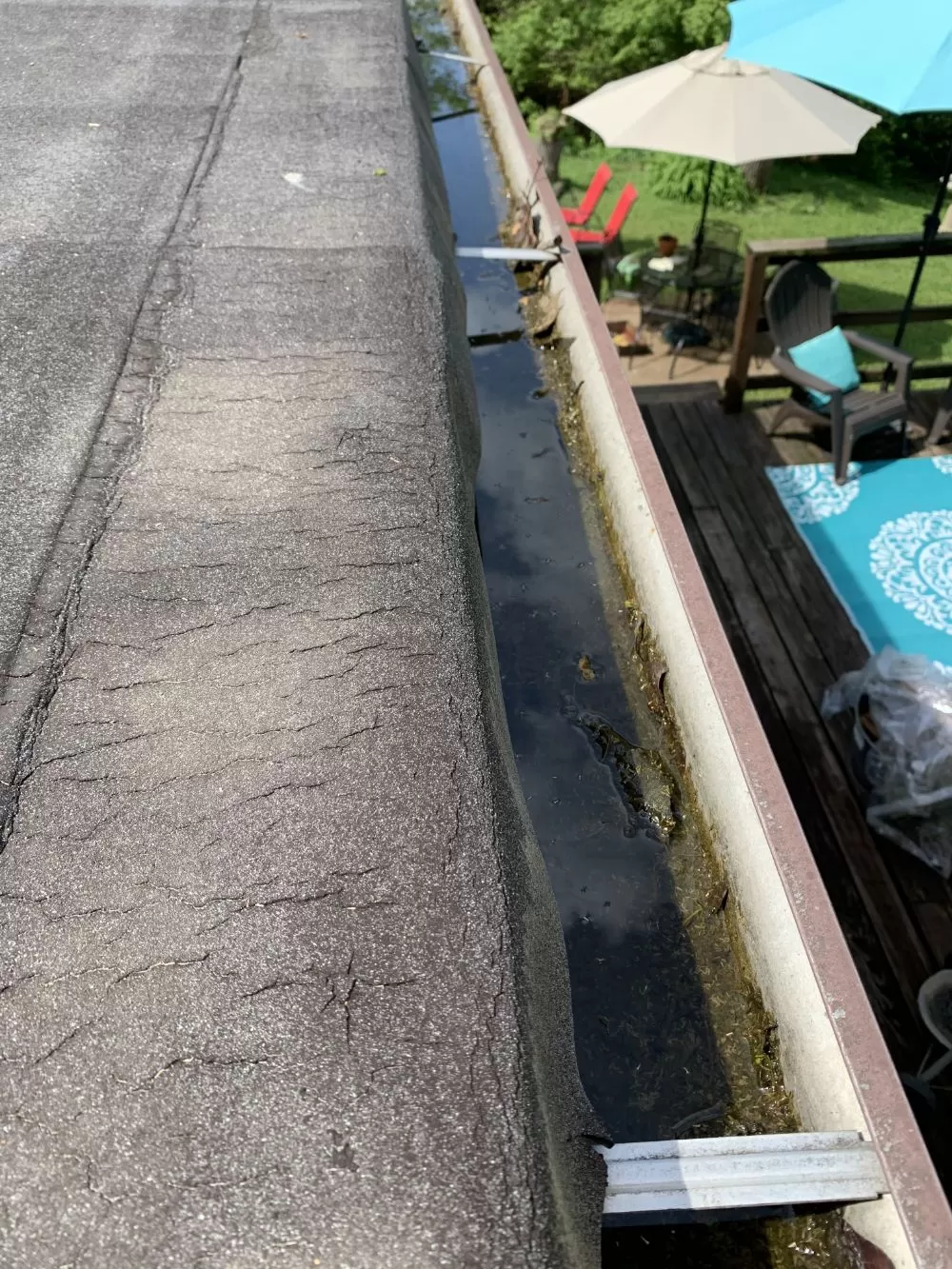 We were called out to this property in Ballwin, MO to take care of cleaning out the gutters that hadn't been cleaned in 3 years. Although they didnt have a ton of leaf build out, they were caked with 2 inches of wet mud on the bottom.